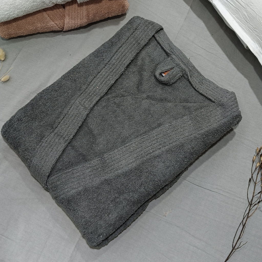 Nuestras batas son extraordinariamente suaves y absorbentes. Ideales para usar después del baño, ofrecen confort excepcional gracias a su diseño práctico con listón para atar y dos bolsillos funcionales. Perfectas para disfrutar del hogar con estilo y bienestar. ¡Descubrí el placer de una bata que combina calidad y confort en cada uso!