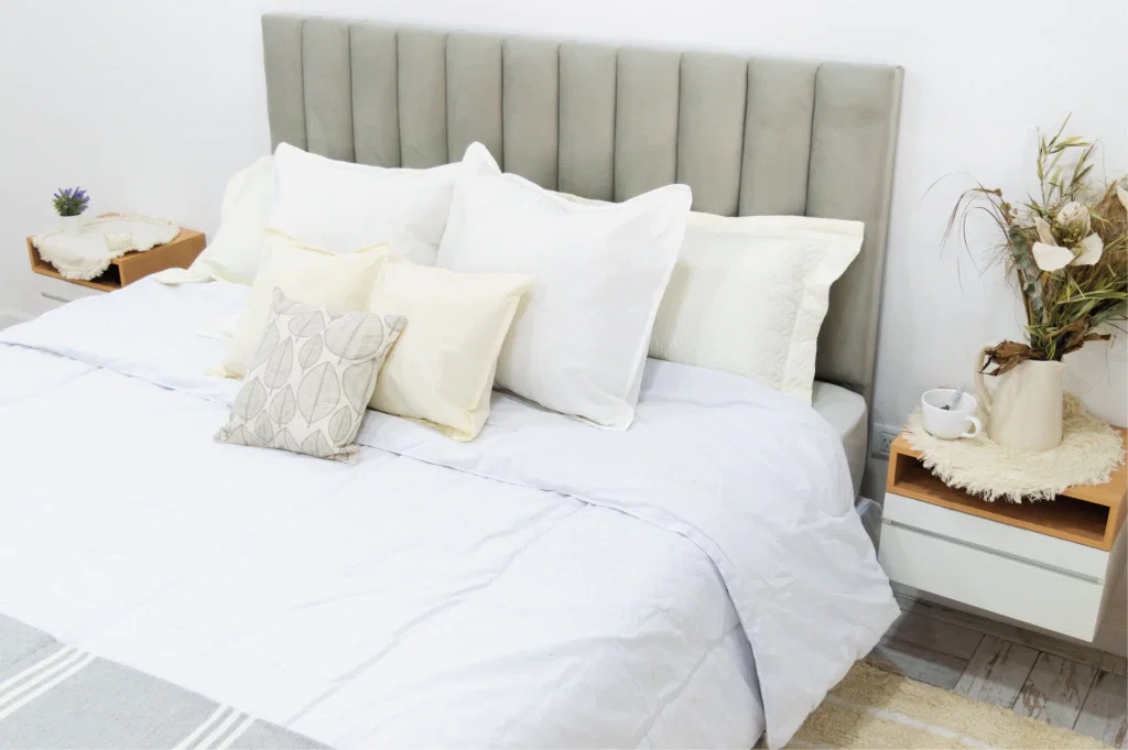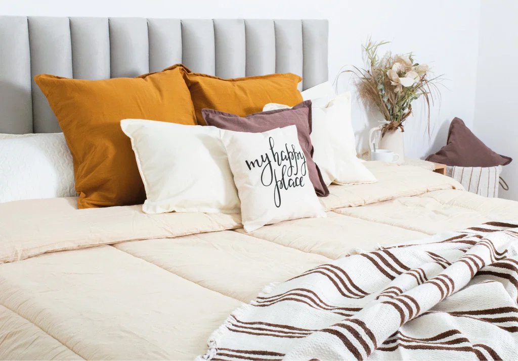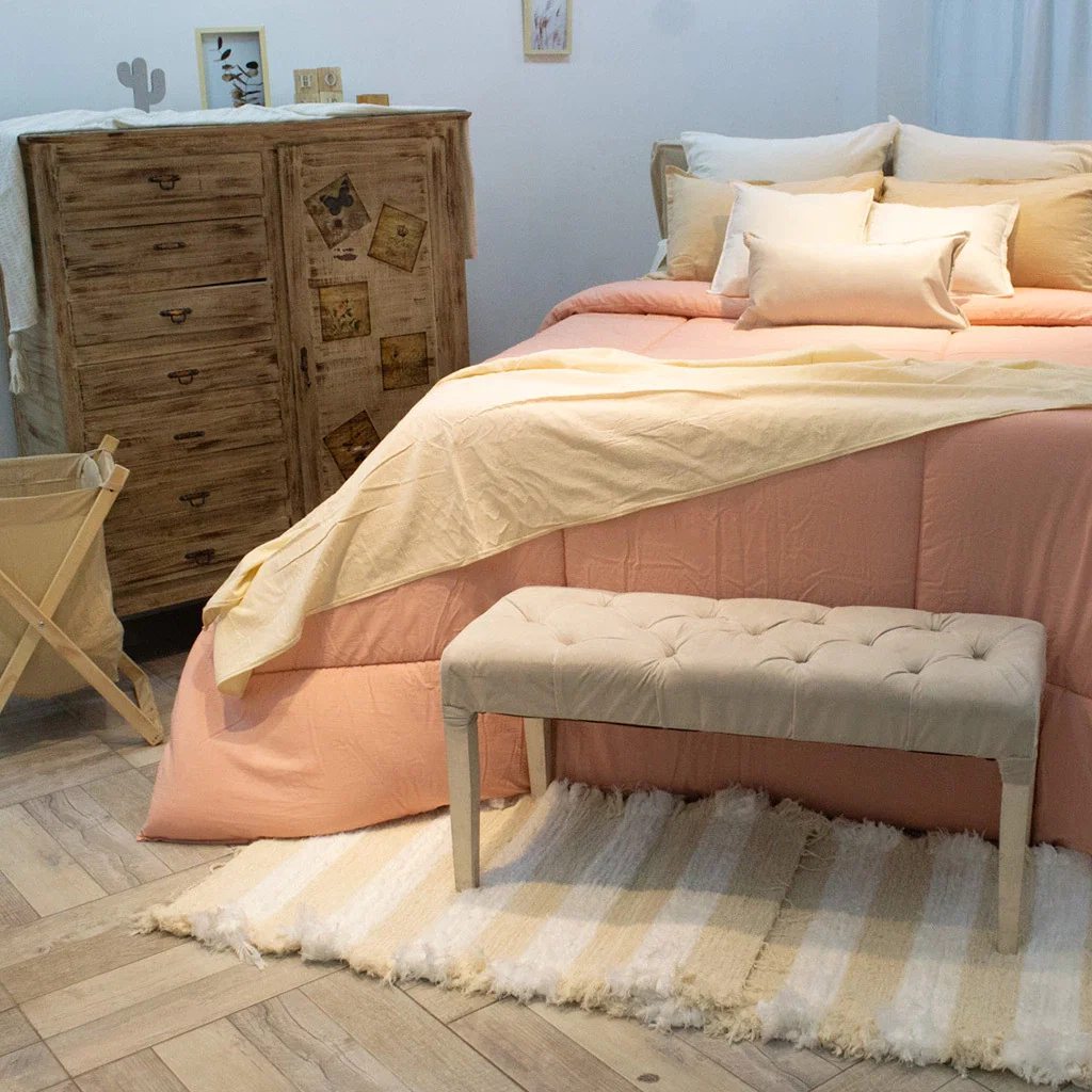Descubrí el acolchado de tusor 100% algodón, suave y pesado, que aporta una calidad insuperable a tu dormitorio. Su textura delicada y su diseño estético lo convierten en el complemento ideal para transformar tu espacio en un refugio de confort y estilo. Un producto que cualquiera desearía tener para sumar elegancia y calidez a su habitación.