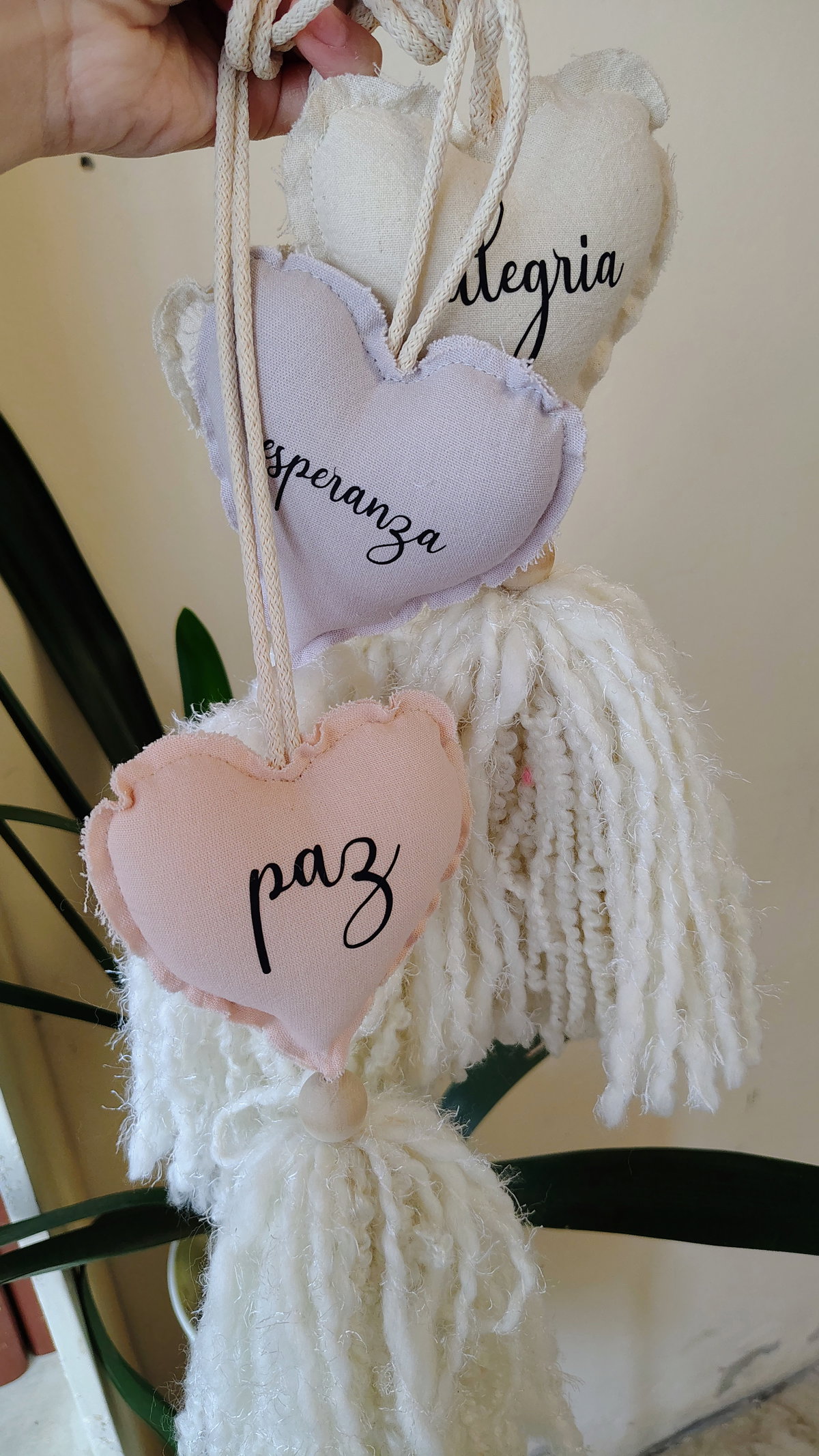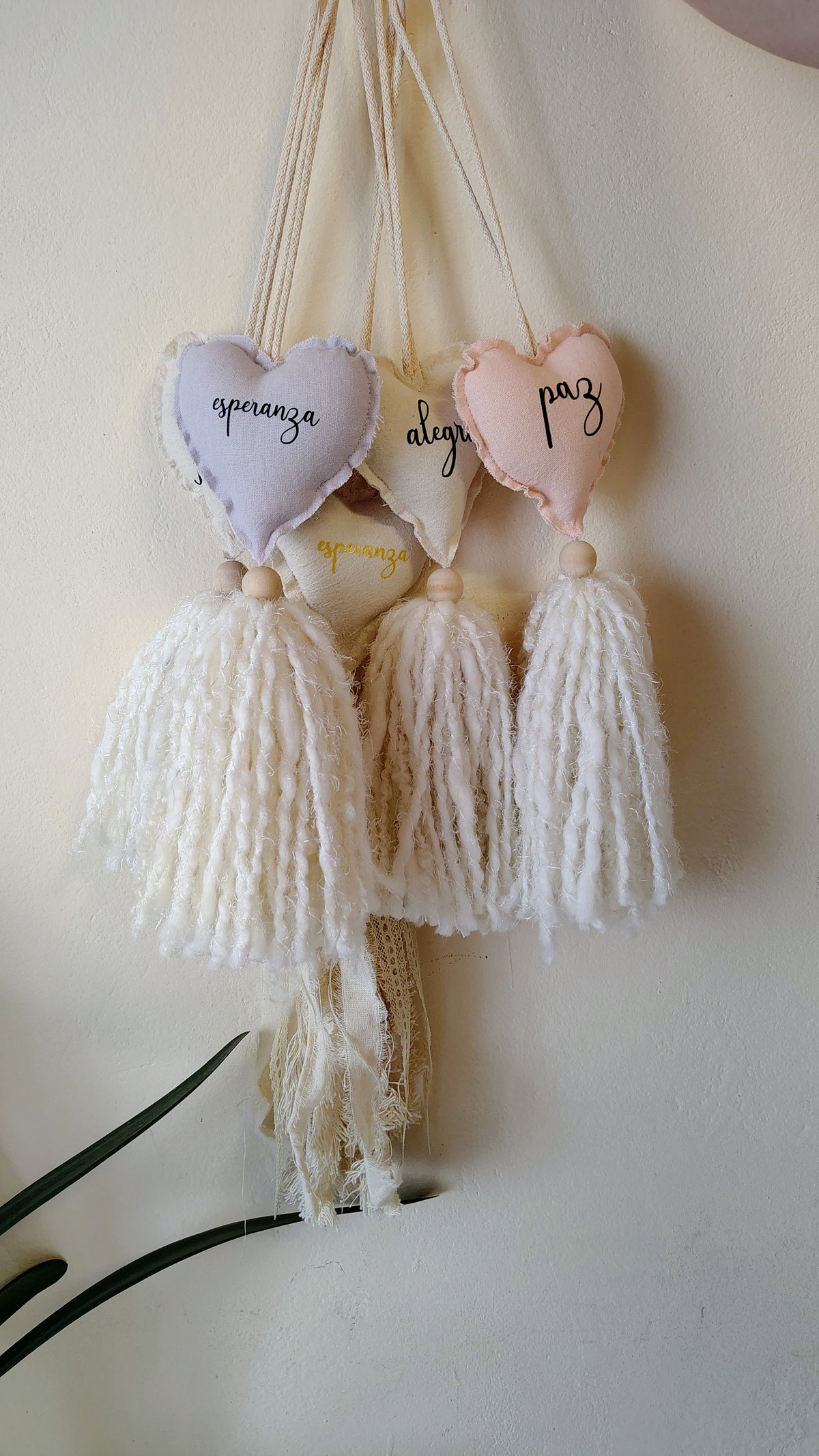 Sujetadores de cortina, deco. Con terminanción en la lana e inscripciones